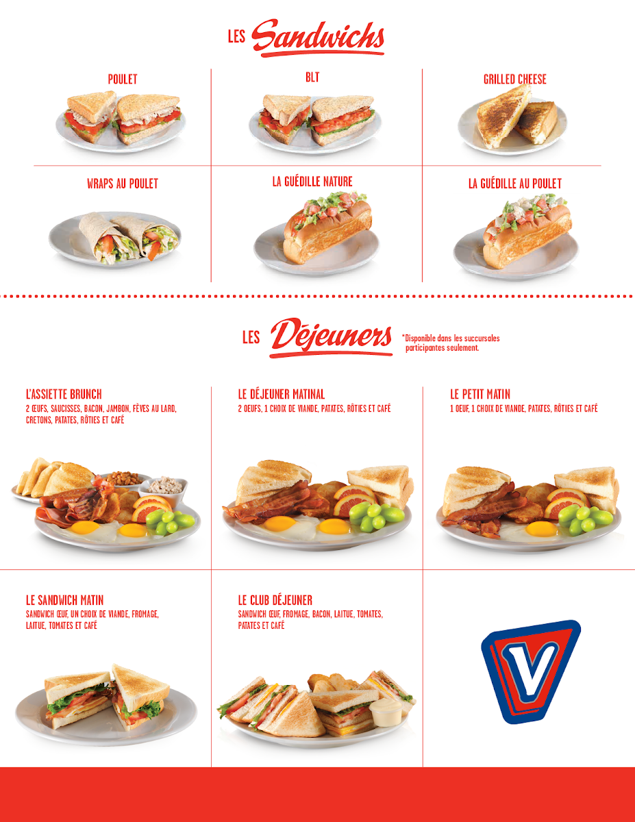 Introducing the menu at Valentine, located in Trois-Rivières-Ouest, Quebec, promises a delightful fast-food experience centered around comfort classics. Their menu features the Trio Déjeuner Express, offering a variety of wraps, burgers, muffins, and bagels—all at zero cost, making breakfast a breeze. For family outings, indulge in their Repas Familiaux, where hearty combinations like steamed hot dogs and fries cater to every appetite, priced to please at CA$32.49.